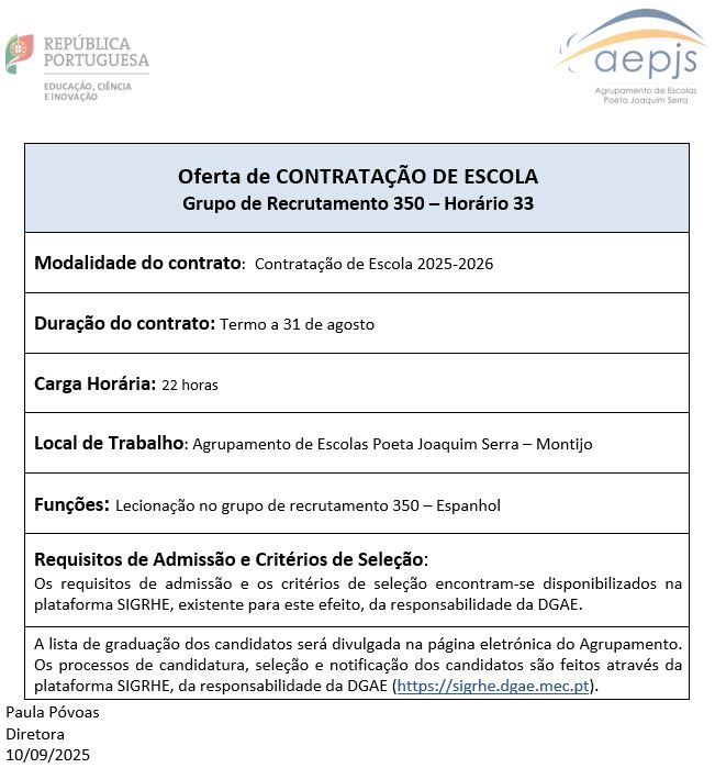| Data final da candidatura : | 2025-09-15 | Nº Horário : | 33 | |||