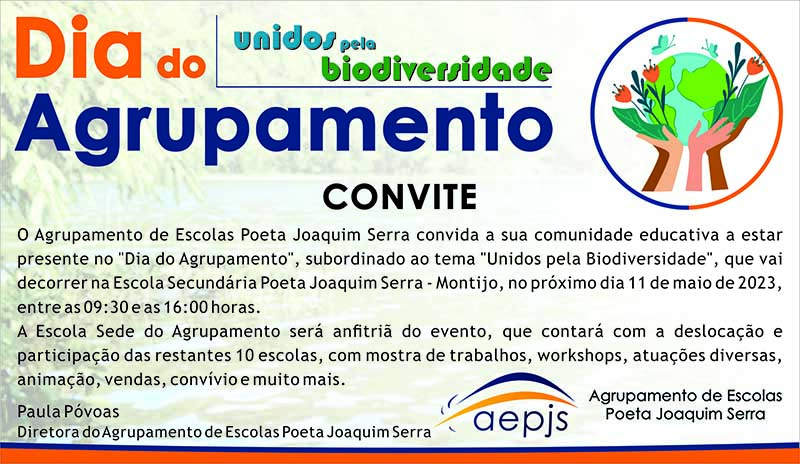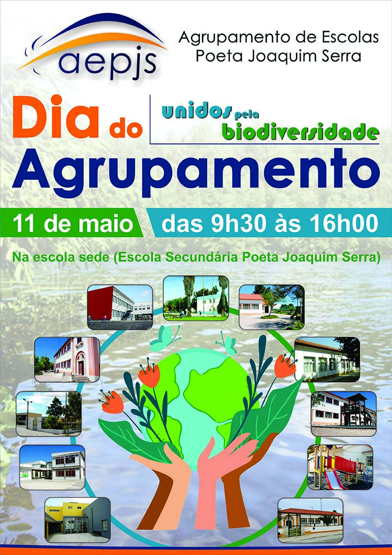 No próximo dia 11 de maio de 2023 (5.ª feira), entre as 9:30 e as 16:00 horas, comemora-se o Dia do Agrupamento, na Escola Secundária Poeta Joaquim Serra.