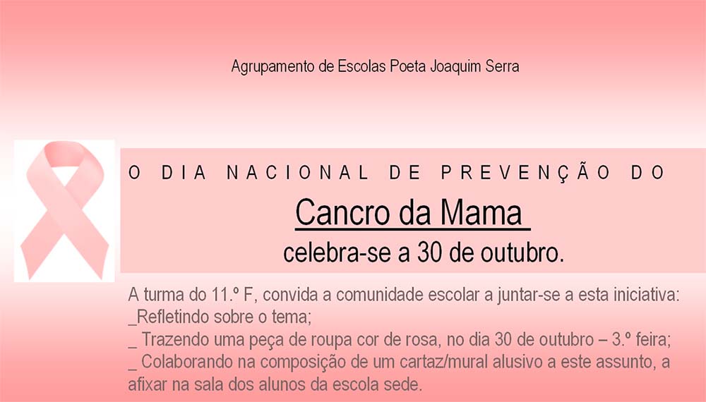 O Dia Nacional de Prevenção do Cancro da Mama celebra-se a 30 de outubro.