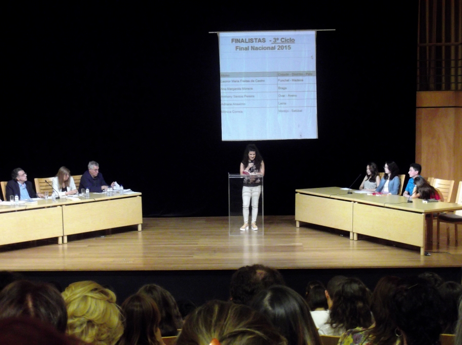 A nossa aluna, Mónica Correia, a representar, nesta Fase Nacional, o Distrito de Setúbal, está de parabéns, porque foi uma das 5 finalistas do 3.º Ciclo e concluiu a sua prestação com uma merecida Menção Honrosa.
